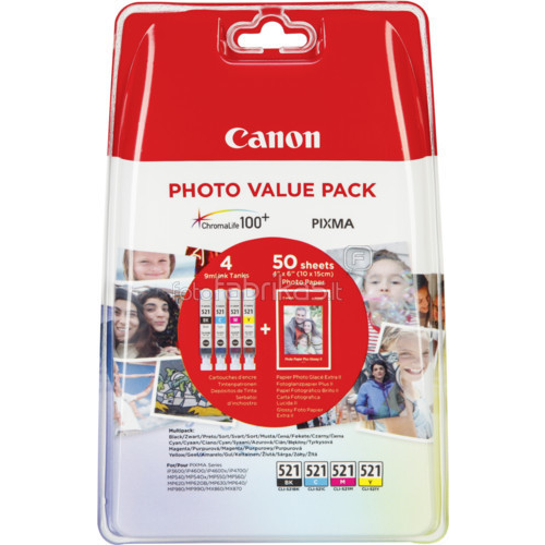 Kortom, met het Canon CLI-521 Value Pack haal je niet alleen hoogwaardige cartridges in huis, maar ook gemoedsrust en de zekerheid van uitstekende afdrukresultaten. Laat je creativiteit de vrije loop en vertrouw op de betrouwbaarheid van Canon voor al je afdrukbehoeften. Dit value pack biedt de perfecte combinatie van kwaliteit, prestaties en gebruiksgemak voor jouw Canon printer. Vind de laagste prijs
