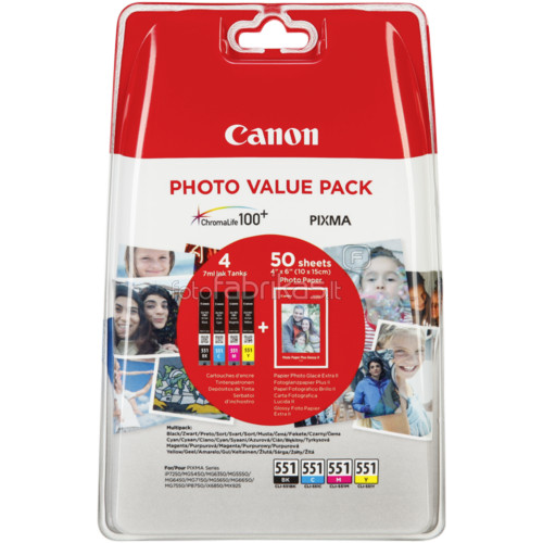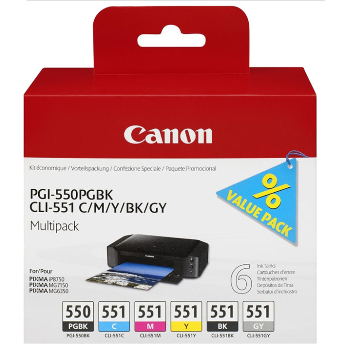 Druk teksten in goede kwaliteit af en print kleurenfoto's helder en levendig met de Canon CLI-551 Value Pack. Met deze cartridges print je tot wel 319 pagina's in kleur en 376 pagina's in zwart-wit. Na gebruik retourneer je gratis de lege cartridges bij Canon. Deze worden opnieuw gebruikt of gerecycled. Zo ben je milieuvriendelijk bezig. Bekijk hieronder voor welke printers dit inktpatroon geschikt is: