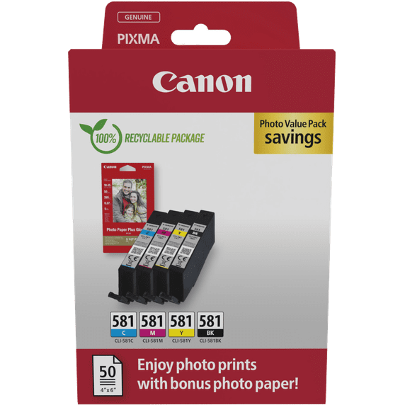 De Canon CLI-581 cartridges werken perfect samen met Canon printers en zorgen voor optimale prestaties. Of je nu thuis, op kantoor of op school print, dit multipack levert consistent hoogwaardige resultaten. Het printen van belangrijke documenten, schoolprojecten of mooie foto's wordt een fluitje van een cent met dit betrouwbare multipack.