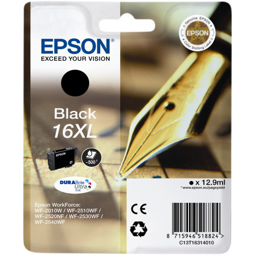 Maak scherpe en heldere afdrukken met de Epson 16XL Cartridge Zwart. Met deze cartridge print je tot wel 500 pagina's in zwart-wit. Lever je gebruikte cartridges in bij een inzamelpunt. Deze worden opnieuw gebruikt of gerecycled. Zo ben je milieuvriendelijk bezig. Bekijk hieronder voor welke printers dit inktpatroon geschikt is: