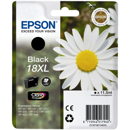 De Epson 18 XL Inktcartridge Zwart C13T18114010 is speciaal ontworpen voor gebruik met Epson printers. Dit betekent dat de inkt perfect wordt afgeleverd op het papier, zonder vlekken of strepen. Met een hoge capaciteit van maximaal 470 pagina's kun je langdurig printen zonder je zorgen te maken over het vervangen van de cartridge.