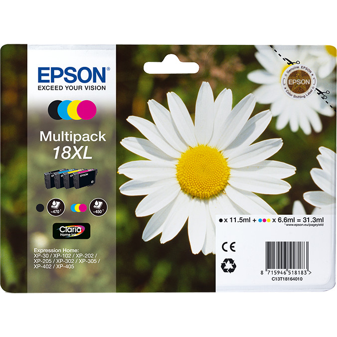 De Epson 18 XL Multipack (4 kleuren) C13T18164010 is de perfecte keuze voor iedereen die op zoek is naar hoogwaardige inktcartridges voor zijn of haar Epson printer. Het gevoel dat dit product oproept is dat van betrouwbaarheid, duurzaamheid en uitstekende prestaties. Met dit multipack krijg je niet alleen vier verschillende kleuren inkt, maar ook gemoedsrust en de zekerheid dat je altijd kunt rekenen op levendige en professionele afdrukken.
