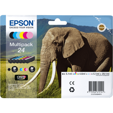 Deze Epson 24 Cartridge 6 Colour Multipack (C13T24284010) is een inktpatroon geschikt voor onderstaande Epson printers.
