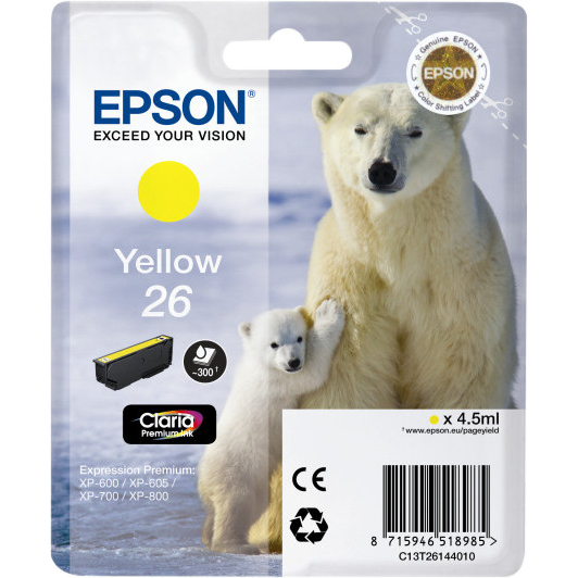 Deze Epson 26 Cartridge Geel is een inktpatroon geschikt voor onderstaande Epson printers.