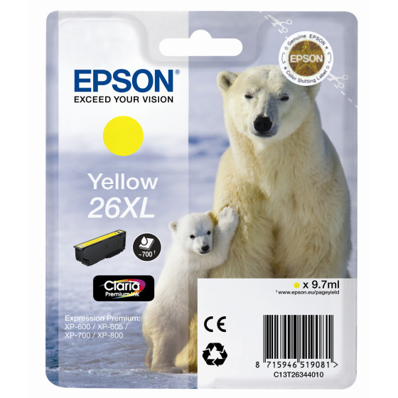 Deze Epson 26 XL Cartridge Geel (C13T26344010) is een inktpatroon geschikt voor onderstaande Epson printers.