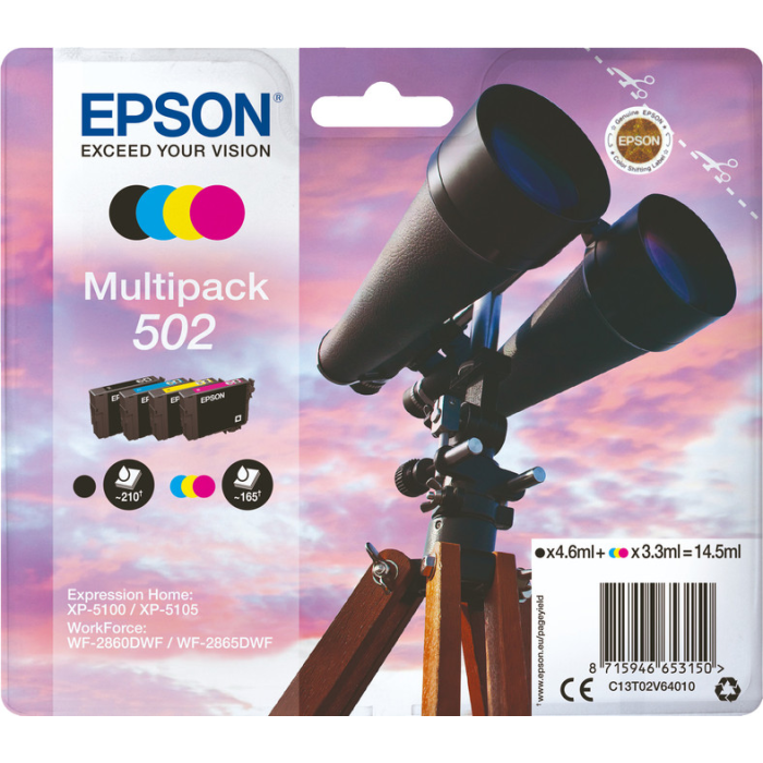 Kies voor de Epson 502 4-Kleuren Pack (C13T02V64010) en ervaar zelf de voordelen van hoogwaardige inktcartridges voor jouw printer. Met dit pack haal je het beste uit jouw afdrukken en ben je verzekerd van professionele resultaten. Printen was nog nooit zo eenvoudig en kwalitatief hoogstaand als met deze cartridges van Epson. Vind de laagste prijs