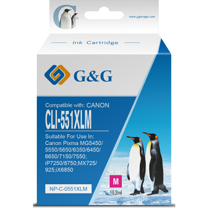 Deze G&G CLI-551 XL Cartridge Magenta is een inktpatroon geschikt voor onderstaande Canon printers.