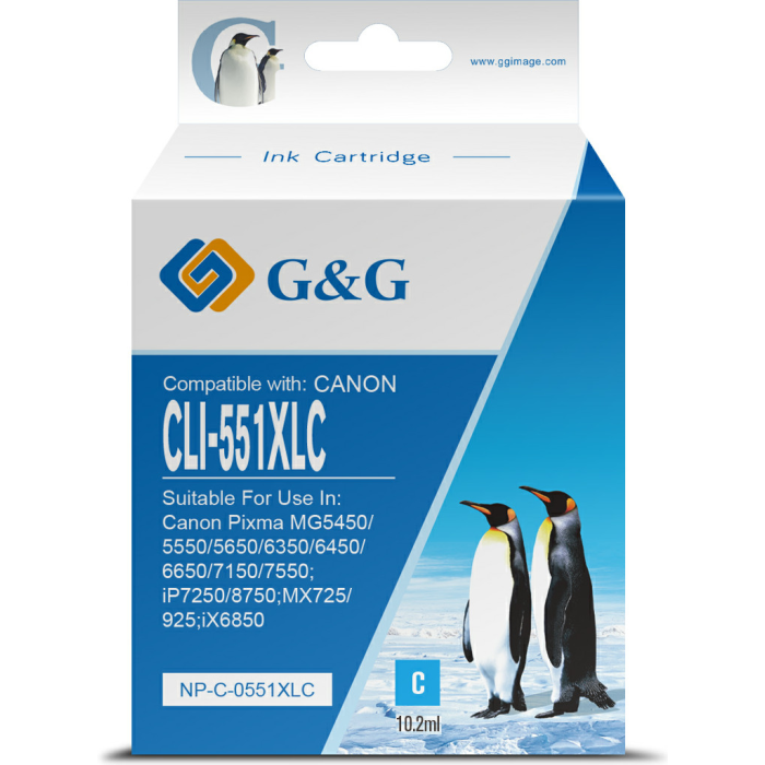 De CLI-551XL cartridge van G&G staat bekend om zijn duurzaamheid en efficiëntie. Elke afdruk ziet er professioneel uit, met een opvallende helderheid en precisie. De cyaan kleur is levendig en sprekend, waardoor je afdrukken tot leven komen. Of je nu bezig bent met het afdrukken van vakantiefoto's, schoolprojecten of zakelijke documenten, met deze cartridge weet je zeker dat elke print er perfect uitziet.