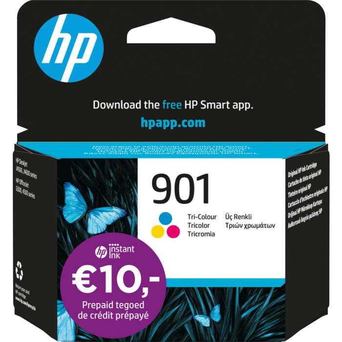 Vervang je kleurencartridge met de HP 901 Cartridge Kleur. Met deze cartridge print je tot wel 360 pagina's in kleur. Printers die gebruikmaken van deze cartridge, zijn ook geschikt voor HP Instant Ink. Met HP Instant Ink krijg jij automatisch en op tijd cartridges of toners in huis als je inkt bijna op is. Zo zit je nooit meer zonder inkt. Bij aankoop van deze cartridge, krijg je ook nog eens gratis € 10,- HP Instant Ink tegoed. Bekijk hieronder voor welke printers dit inktpatroon geschikt is: