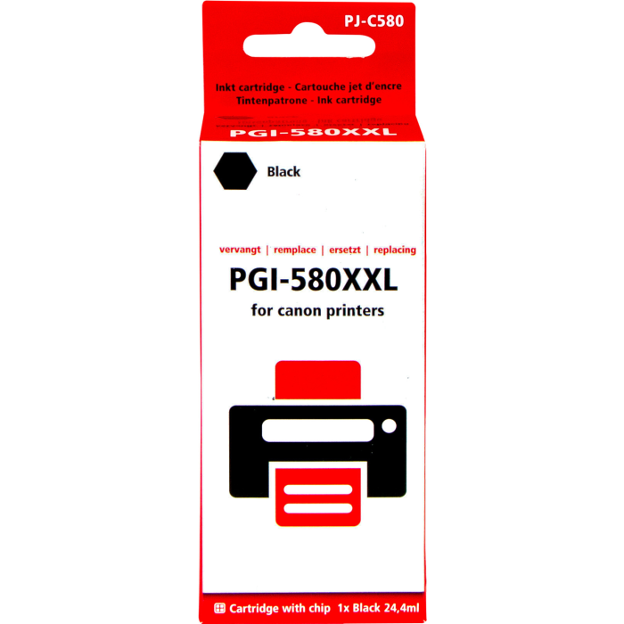 De Huismerk Pixeljet PGI-580XXL Cartridge Zwart is een zwarte XXL cartridge met 24,4 ml inhoud. Deze cartridge is geschikt voor de volgende Canon Pixma modellen: