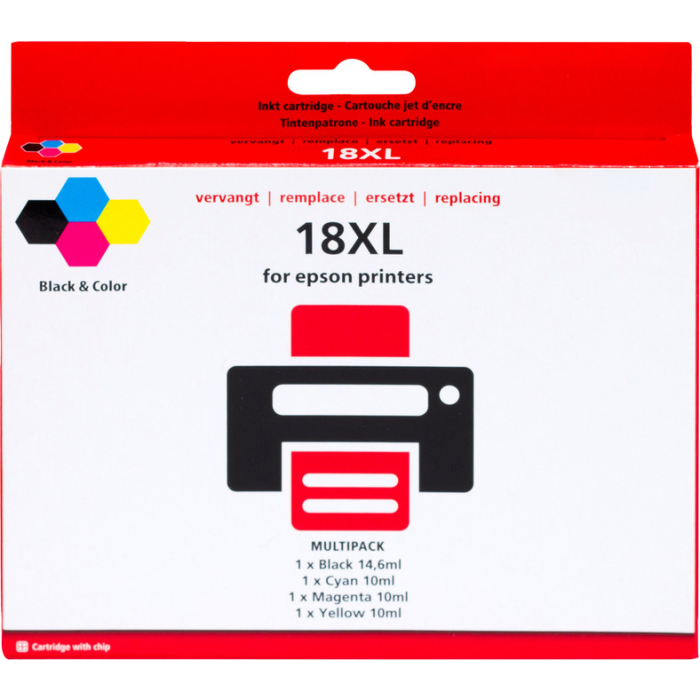 Breng de levendige kleuren tot leven met het Huismerk 18 XL 4-Kleuren Pack voor Epson (C13T18164010). Dit huismerk cartridges pack biedt alles wat je nodig hebt om heldere en scherpe afdrukken te maken, keer op keer. Met dit complete pack kun je vol vertrouwen documenten printen, afbeeldingen afdrukken en creatieve projecten tot leven brengen.