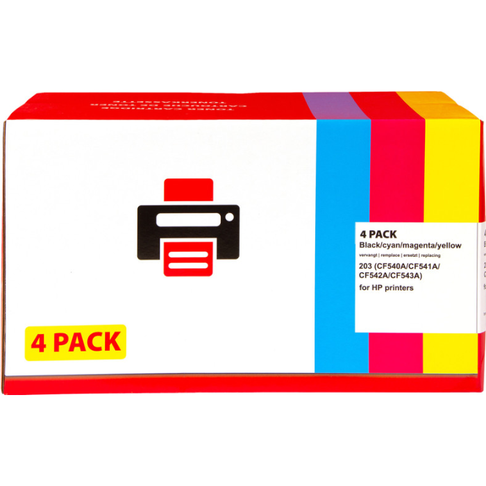De Huismerk 203 Toner 4-pack (CF540A-543) is een product dat uitblinkt in zowel kwaliteit als kwantiteit. Dit hoogwaardige product is speciaal samengesteld om aan al je printkwaliteitsbehoeften te voldoen. Met deze 4-pack ben je verzekerd van scherpe en heldere afdrukken, of het nu gaat om professionele rapporten, schoolwerk of persoonlijke documenten.
