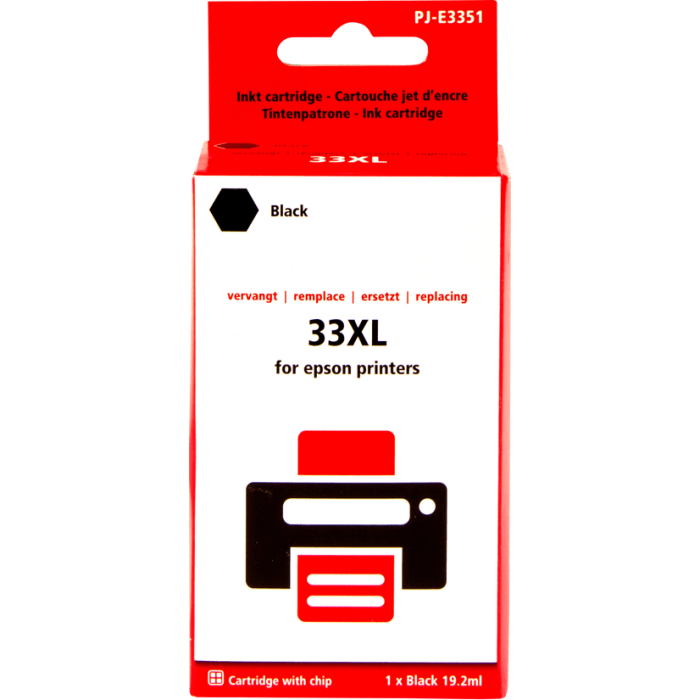 Met de Huismerk 33XL Zwart cartridge voor Epson (C13T33514010) haal je optimale prestaties en scherpe afdrukresultaten in huis. Dit hoogwaardige huismerkproduct is speciaal ontworpen om te voldoen aan al je printbehoeften, met een uitstekende printkwaliteit die indruk zal maken. Met deze cartridge ben je verzekerd van heldere en diepe zwarte tinten, waardoor al je documenten en afbeeldingen er professioneel en verzorgd uitzien.