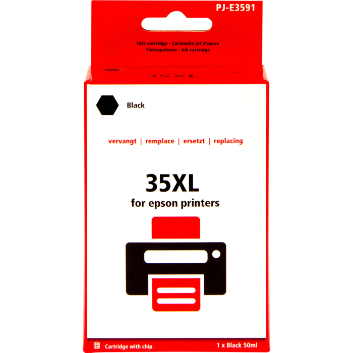 Met het Huismerk 35XL Zwart voor Epson (C13T35914010) kies je voor kwaliteit en betrouwbaarheid. Deze hoogwaardige cartridge is speciaal ontworpen om te voldoen aan al jouw printbehoeften, of je nu thuis documenten afdrukt of op kantoor werkt aan belangrijke projecten.