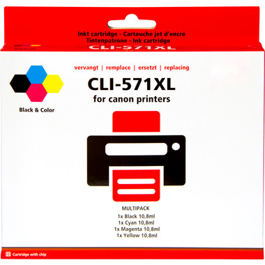 Deze Pixeljet CLI-571 XL 4-Kleuren Pack voor Canon printers is een inktpatroon geschikt voor onderstaande Canon printers.